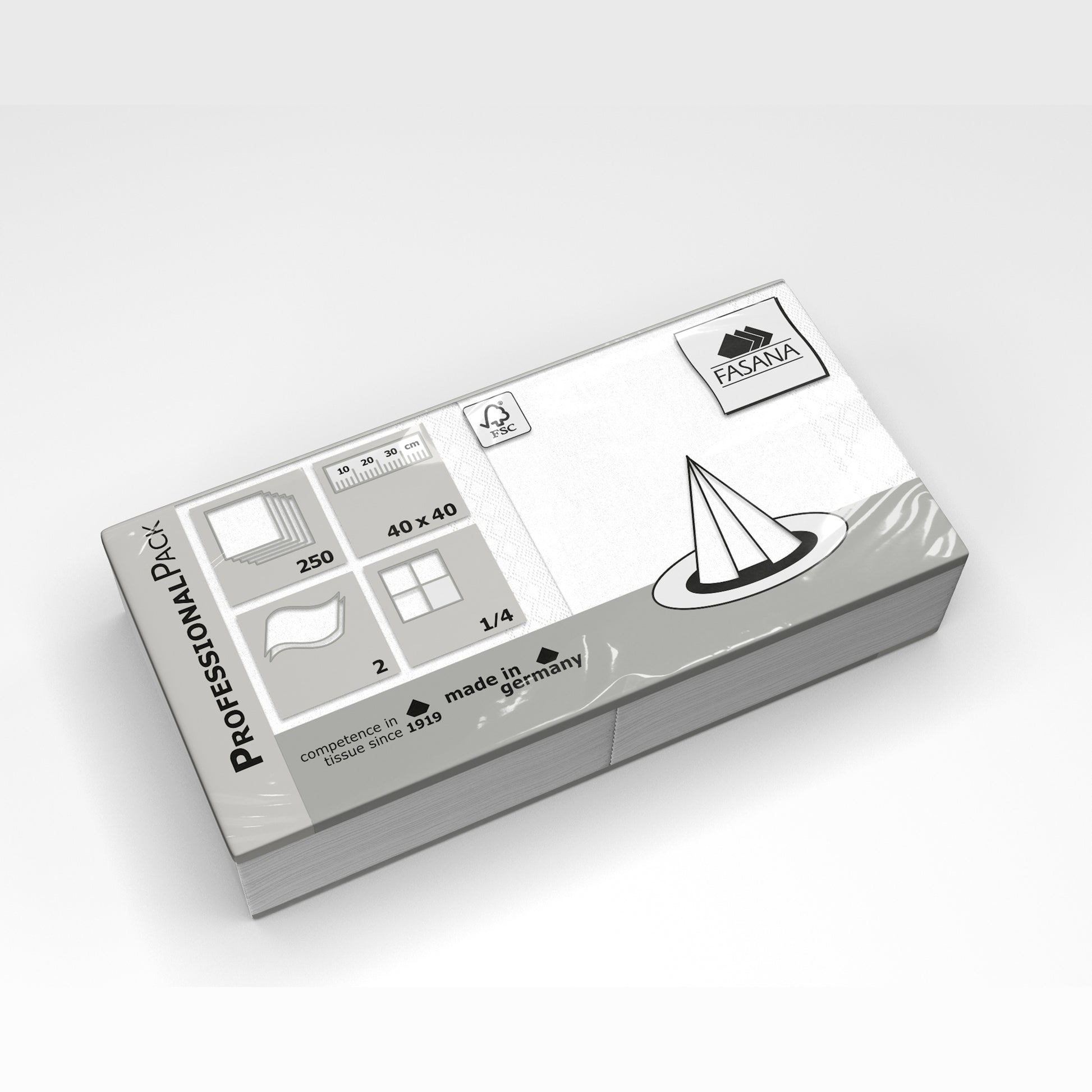 Verpackungsdaten Servietten Fasana uni, 2-lagig, 1/4-Falz, 40 x 40 cm: