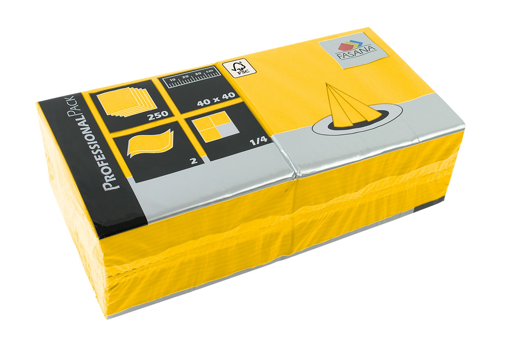 Verpackungsdaten Servietten Fasana uni, 2-lagig, 1/4-Falz, 40 x 40 cm: