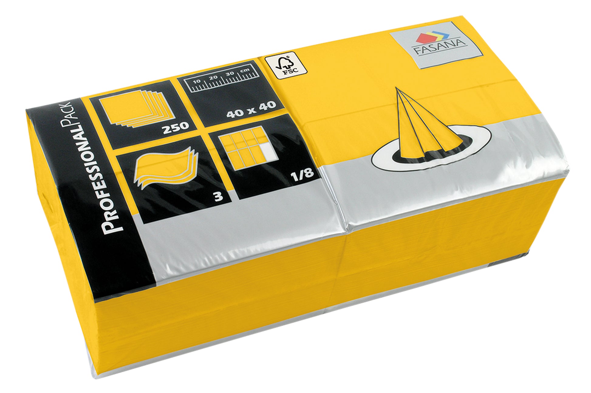 Verpackungsdaten Servietten Servietten Fasana uni, 3-lagig, 1/8-Falz, 40 x 40 cm: