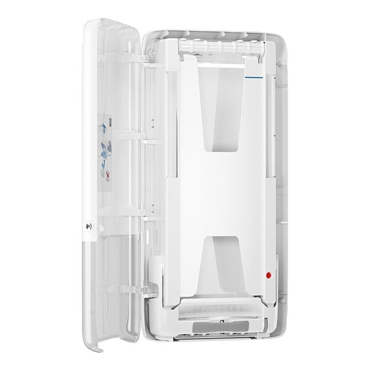 Der Tork PeakServe Spender H5 ist ein moderner und praktischer Handtuchspender, der sich ideal für stark frequentierte Waschräume eignet. Mit seinen grosszügigen Abmessungen von 730 x 370 x 101 mm bietet er eine hohe Kapazität und sorgt so für weniger Nachfüllen und mehr Effizienz im Alltag. Der Spender ist aus robustem Kunststoff gefertigt und in den Farben Schwarz oder Weiss erhältlich, sodass er sich harmonisch in verschiedene Raumkonzepte integrieren lässt. Dank seines benutzerfreundlichen Designs wird eine hygienische und kontrollierte Papierausgabe ermöglicht, wodurch sich der Verbrauch reduziert und die Sauberkeit verbessert.
