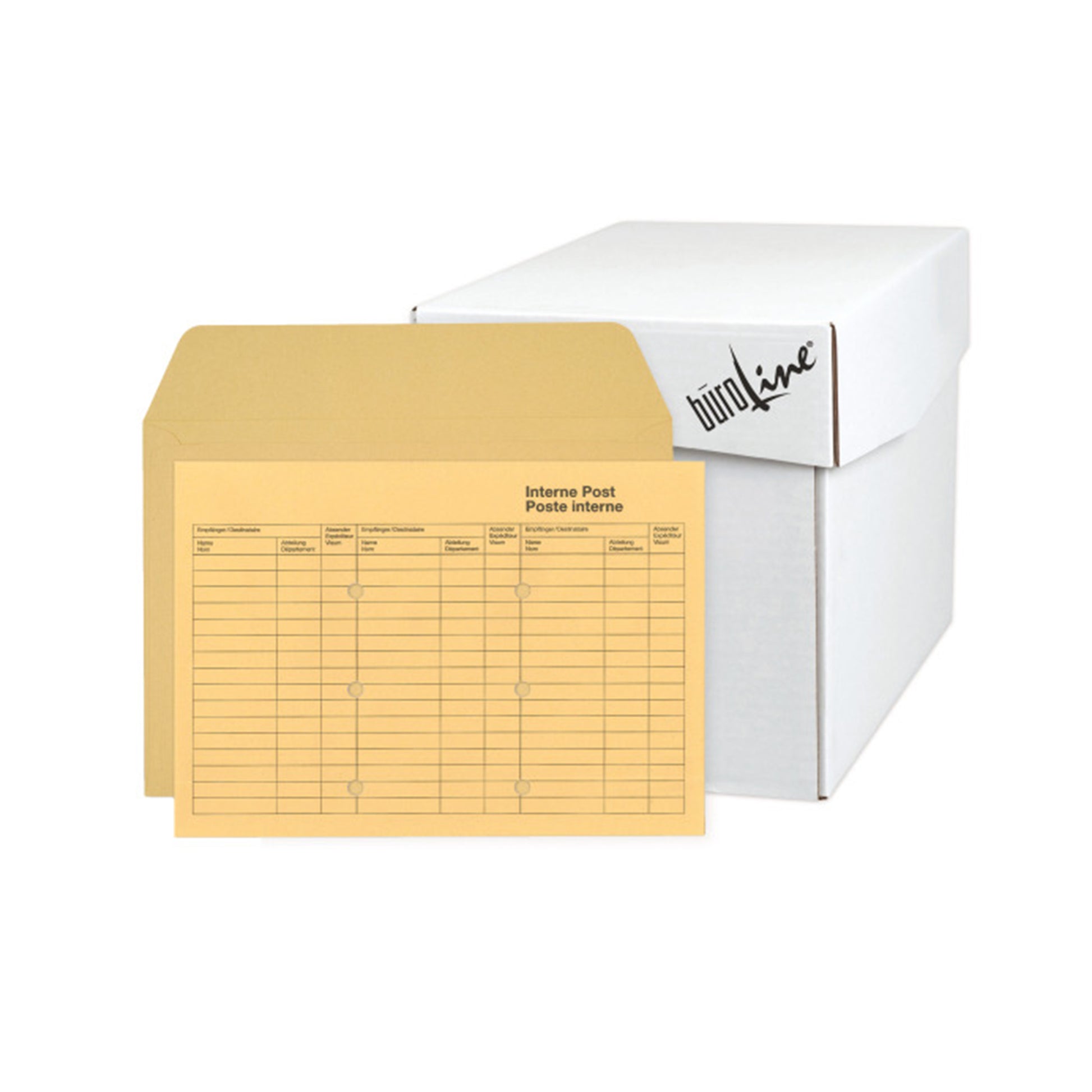 Büroline Interne PostD/F C4, braun, 120 g, 250 Stück pro Schachtel. Vorgedruckter und perforierter Umschlag aus Kraftpapier für die interne Post. Klappe ohne Klebstoff.