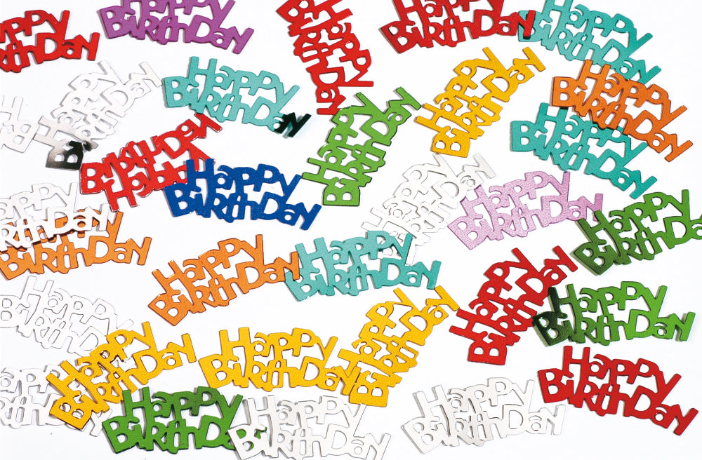 Streuschmuck „Happy Birthday“ aus PVC-Folie, im Pack à 15 Gramm.