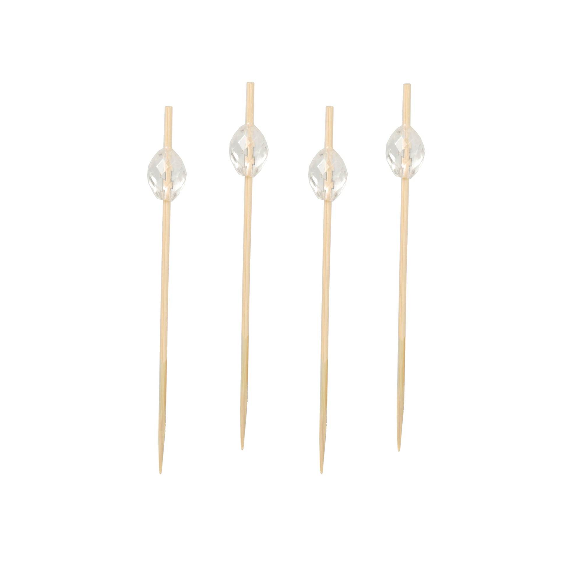 Hölzerne Fingerfoodspiesse mit Diamantdekoration.