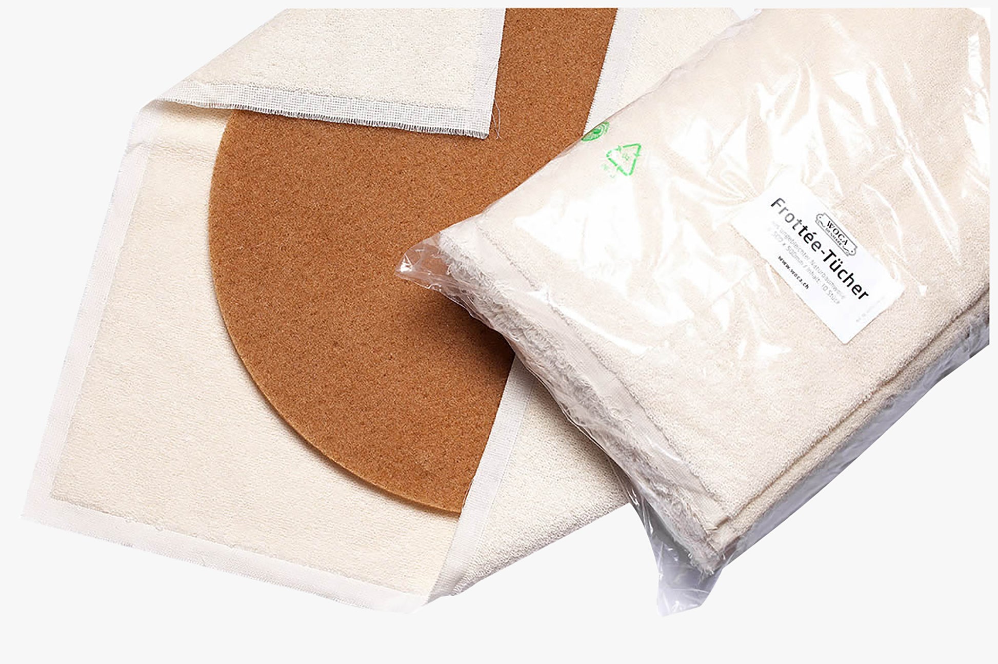Frotteetuch aus ungebleichter Naturbaumwolle zum Entfernen von überschüssigem Öl.