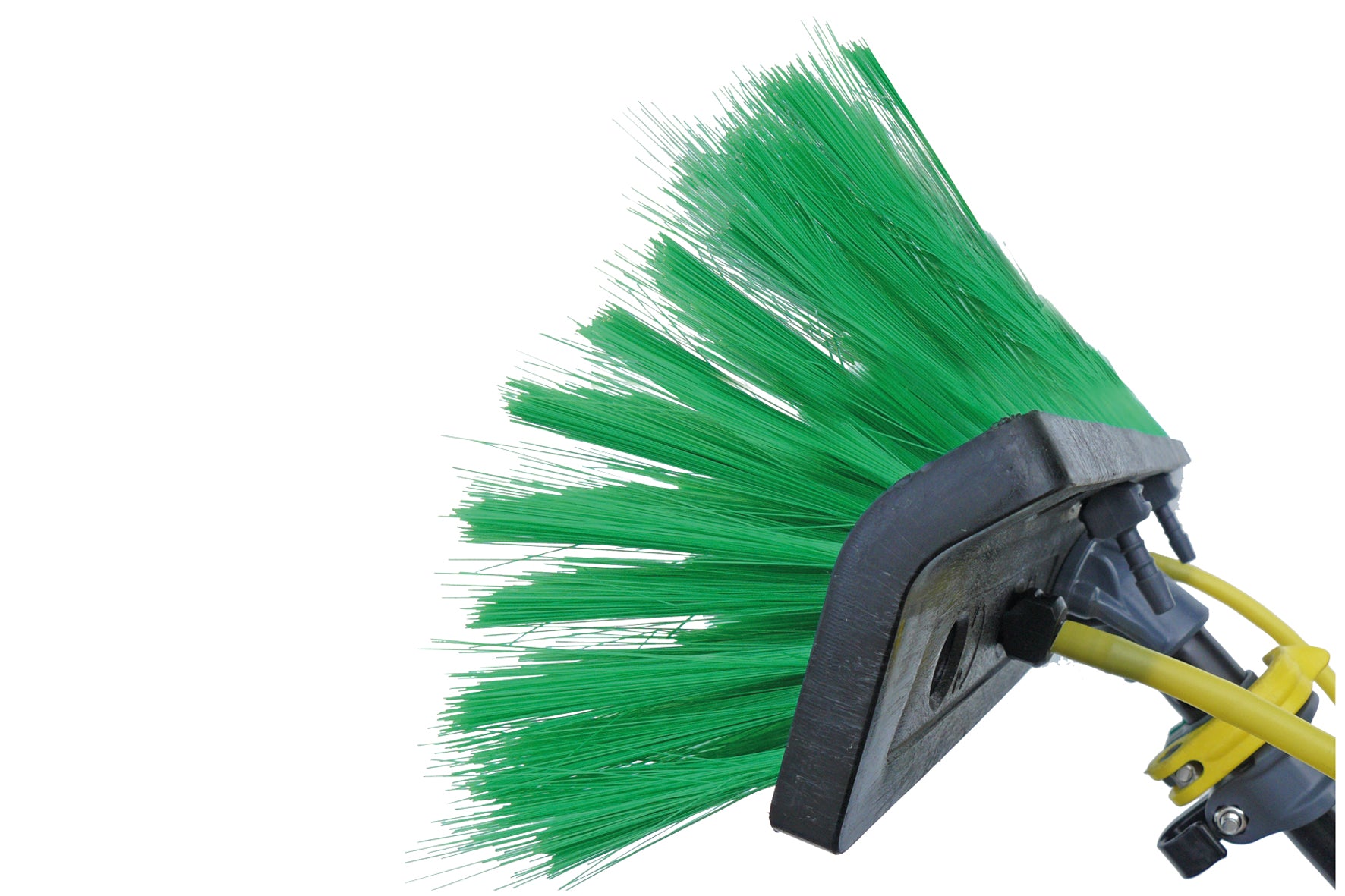 Die superleichte nLite Winkelbürste gelangt ohne Probleme in die kleinsten Zwischenräume und entfernt den Oberflächenschmutz. Da die Bürste angewinkelt ist, kommt sie leichter in die Ecken von Fensterbänken und Rahmen. Die Kunststoffbürste kann mit bis zu 4 Sprüh- oder Strahldüsen mit Schnellverschluss ausgerüstet werden. Das vereinfacht die Kontrolle des Wasserflusses und des Spülens. Ein Paar Strahldüsen sind beim Kauf dabei. Mit einer Breite von 27 cm eignet sich die Bürste optimal für kleinere Flächen.