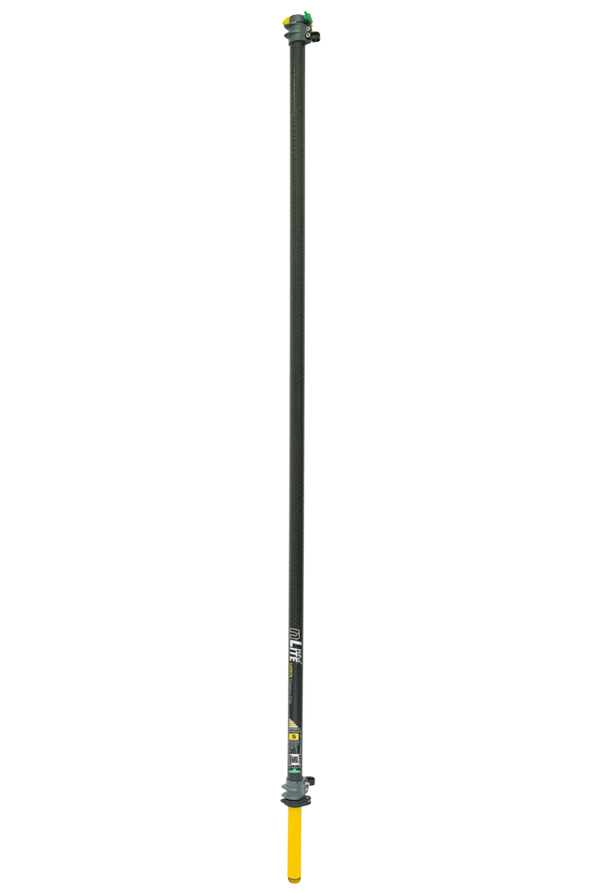 Teleskopstange mit hoher Steifigkeit und geringem Gewicht. Gelber Warnbereich, um unbeabsichtigtes Trennen der Stangen zu vermeiden. Hifflo, N-Lite, perches téléscopiques