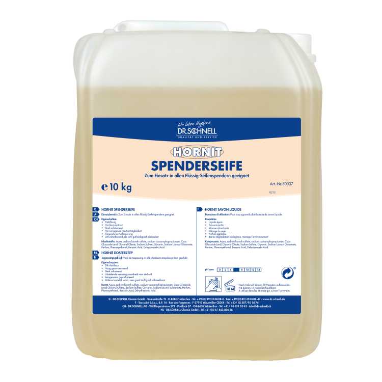 HORNIT SPENDERSEIFE ist eine hautmilde Waschlotion zum Einsatz in nachfüllbaren Flüssigseifenspendern für die schonende Hautreinigung mit einer hochwertigen Reinigungs-Pflege-Formel.