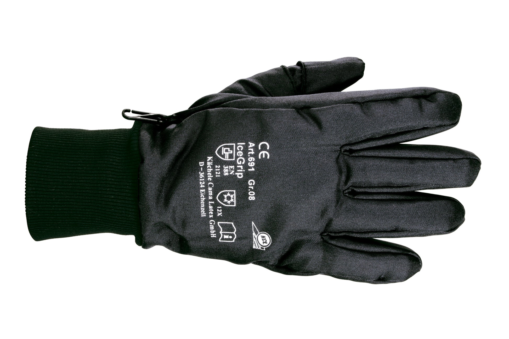 Der IceGrip® Kälteschutzhandschuh gewährleistet durch sein hochwertiges Thinsulate®-Fasermaterial und dem langen, enganliegenden Strickbund kurzfristigen Kälteschutz bis zu -50ºC. Die anatomische Passform und die Strapazierfähigkeit erhöhen den Tragekomfort. Des Weiteren ist der feuchtigkeitsabweisende Handschuh dank seines textilen Handrückens atmungsaktiv und besitzt je einen Karabinerhaken, um ihn aufzuhängen, trocknen oder befestigen zu können.