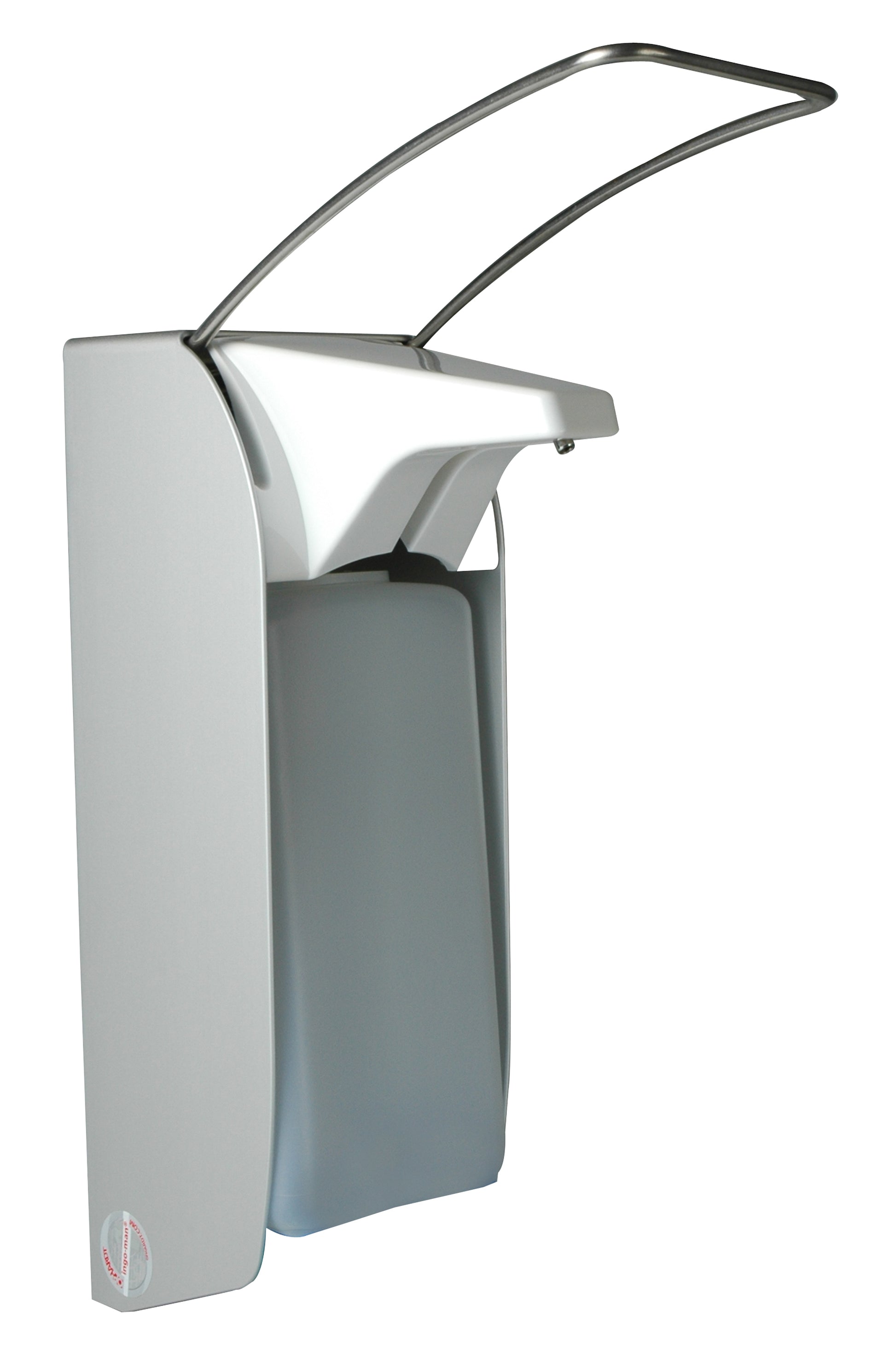 Nachfüllbarer Spender aus eloxiertem Aluminium, einsetzbar für Desinfektionsmittel und auch Flüssigseifen, mit einem Fassungsvermögen von 1000 ml. Der Spender ist ausgerüstet mit einem langen Edelstahlbedienungshebel (Typ TLS, 225 mm lang) mit Druckbetätigung, einem Kunststoffnachfüllbehälter und einer austauschbaren Edelstahlpumpe mit gekröpftem Saugrohr (Typ 24). Der robuste, hochwertige Spender ist spülmaschinenfest und autoklavierbar. Das Produkt ist verpackt im Karton à 1 Stück.