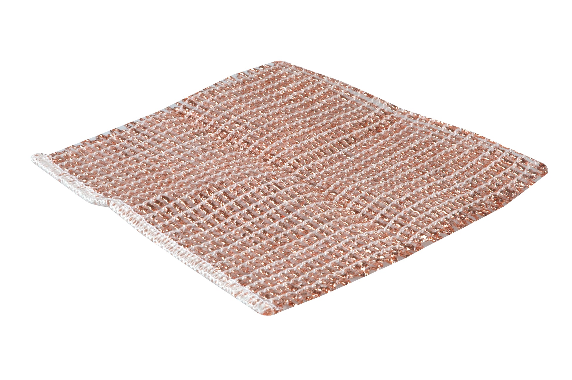 Kupferlappen. Reinigungslappen bestehend aus Kupferdraht verflochten mittels Polypropylenfäden. Hervorragend geeignet für die Reinigung von Kupferprodukten.