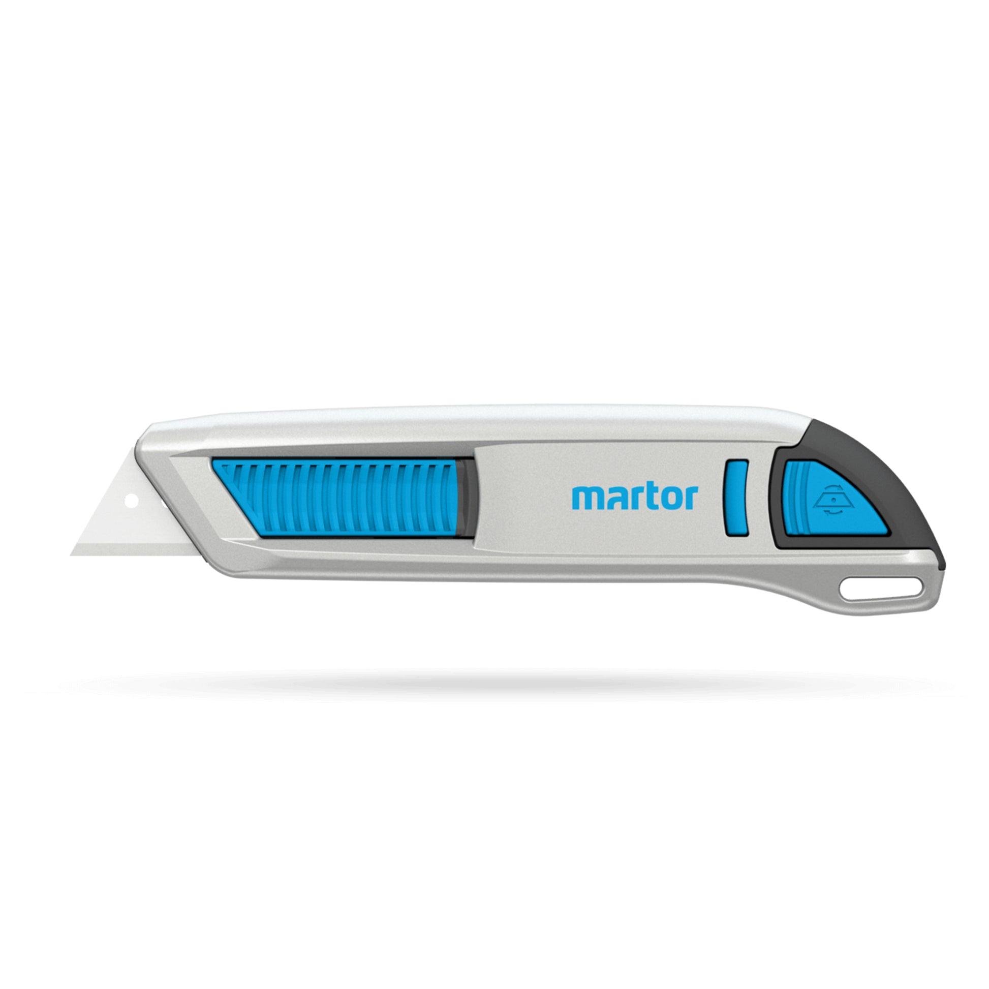 Secunorm Sicherheitsmesser mit Trapezklinge von Martor schenkt dank seinem Aluminiumgriff ein besseres Handling und ein angenehmes Arbeiten. Mit automatischen Klingenrückzug für schütz gegen Schnittverletzungen und werkzeugloser Klingenwechsel mit Klingenwechselknopf. Das Messer für Anspruchsvolle Arbeiten.