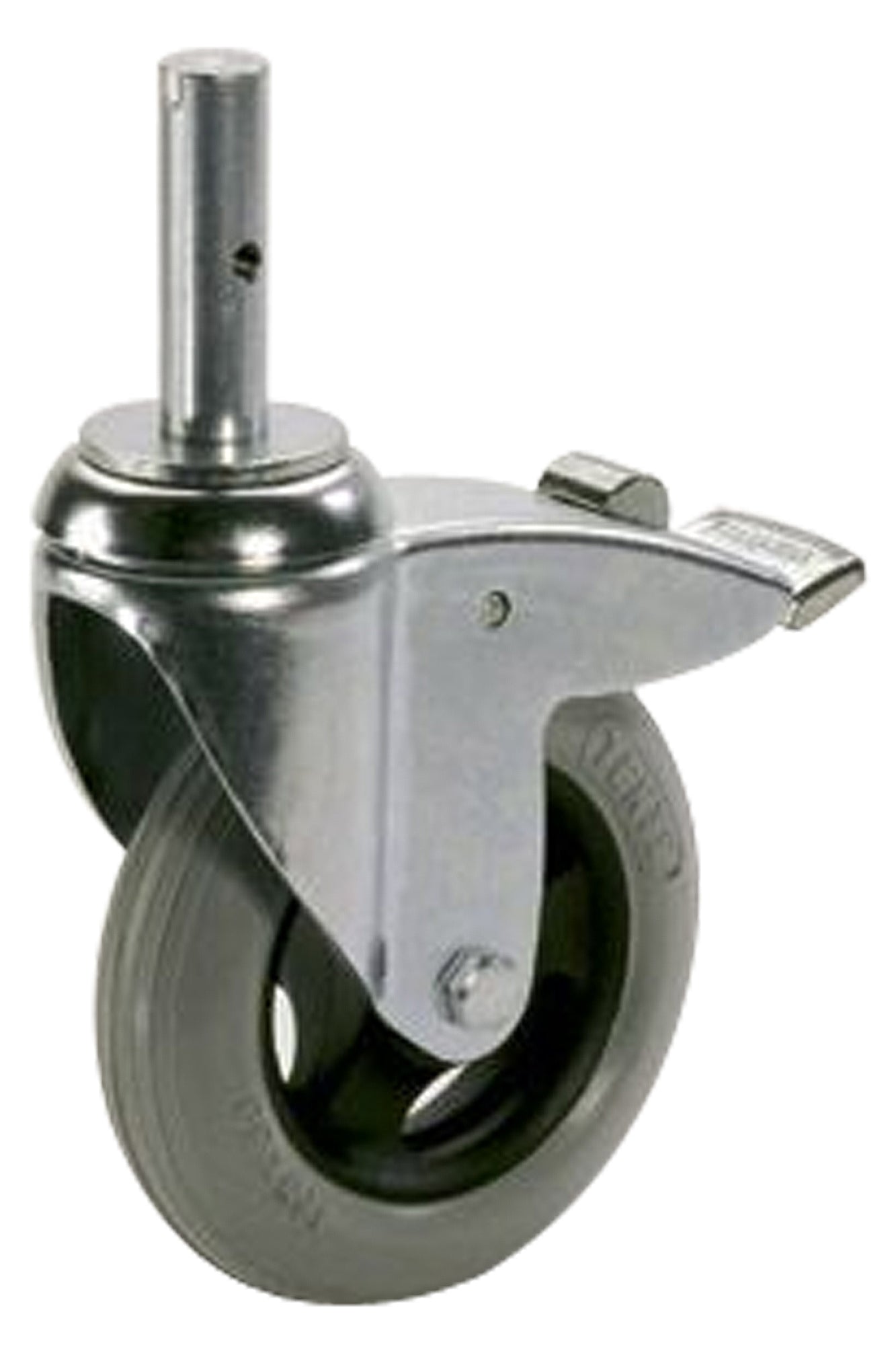 4 Lenkrollen ø 125 mm, davon 2 mit Totalfeststeller, Abweiserrollen aus elastischem und stoßfestem Kunststoff, im Bedarfsfall durch Lösen der Rollen schnell austauschbar. Die Gesamt-Tragkraft beträgt: 80 kg (2 Borde) und 120 kg (3 Borde).