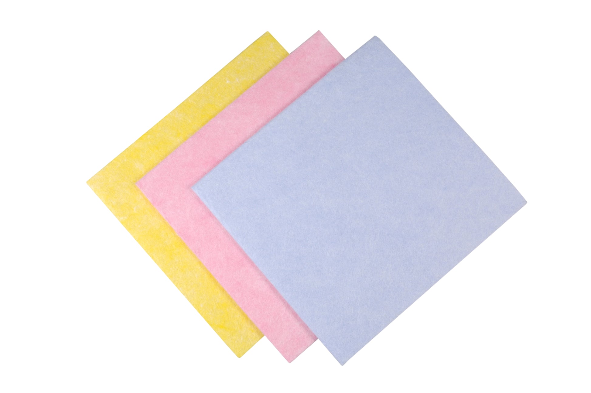 Die Tücher sind verpackt in farbenreinen Packungen - die Kartons sind assortiert - in gelb, rosa und blau.