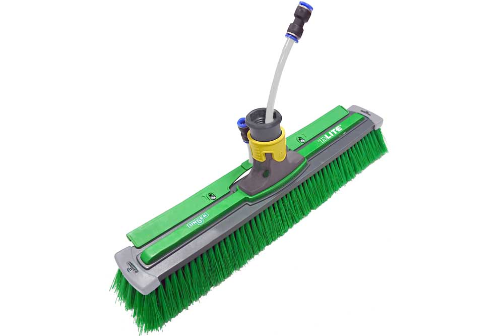 - Mittig in der Bürste integrierter Düsenblock für kraftvolle Schmutzentfernung