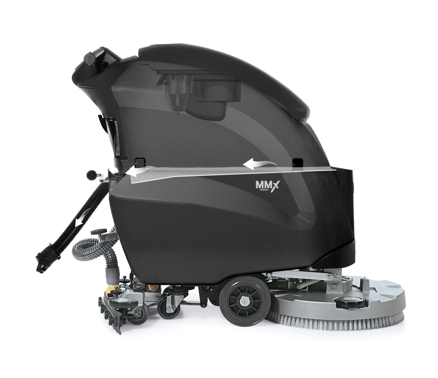 Die Scheuersaugmaschine MMx50 BT wurde für eine anspruchsvollere Kundschaft ausgelegt, die Wert auf Produktivität bei niedrigen Betriebskosten legt. Sie ist eine batteriebetriebene Nachläufer-Scheuersaugmaschine mit halbautomatischem oder automatischem Antrieb und wird in der Einscheibenausführung mit 51 Arbeitsbreite hergestellt.