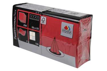 Erstklassige Fasana Servietten uni aus 2-lagiger Zellulose, 33 x 33 cm gross, in 1/4-Falz, verpackt in der praktischen Grosspackung à 250 Stück. Die extra weichen, angenehmen und besonders saugfähigen Servietten sind erhältlich in verschiedenen Farben.