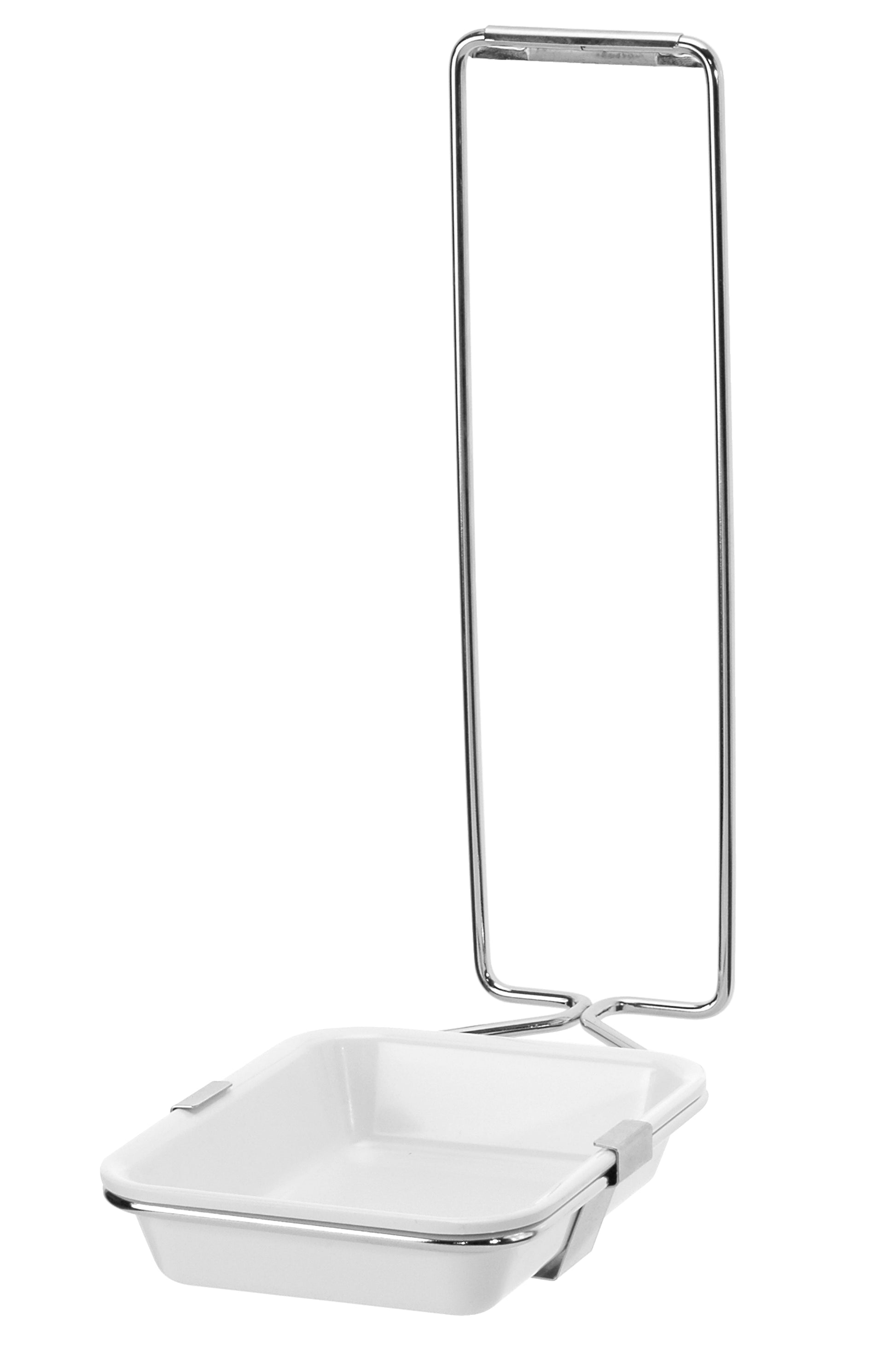 Schalenhalter zum Auffangen von Desinfektionsmitteltropfen, geeignet für ingo-man® und ingo-man® plus Spender mit einem Fassungsvermögen von 500 ml. Der Schalenhalter bestehend aus einer Schalenklammer und einem Wandhalter aus Edelstahl und einer Auffangschale aus Kunststoff und wird über das Spendergehäuse gehängt. Das Produkt ist verpackt im Karton à 1 Stück.