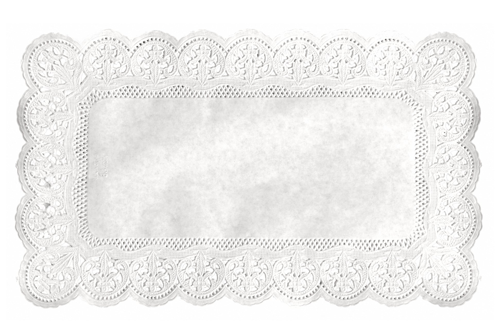 Weisse Tortenspitzen aus Papier, mit einer Grammatur von 40 g/m2 und einer Grösse von 46 x 36 cm. Verpackt im Karton à 20 x 100 Stück.