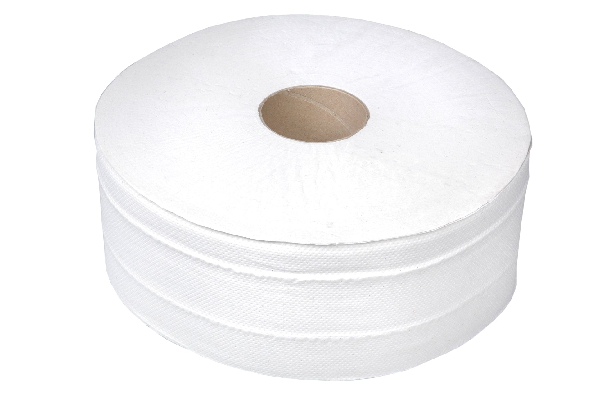 Zweilagiges Toilettenpapier, aus weisser Zellulose, auf der Jumbo-Rolle à 1166 Coupons, neutral verpackt.
