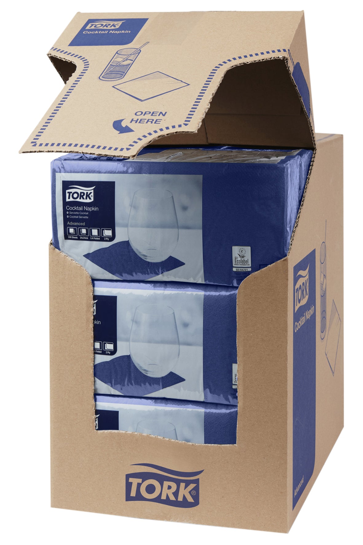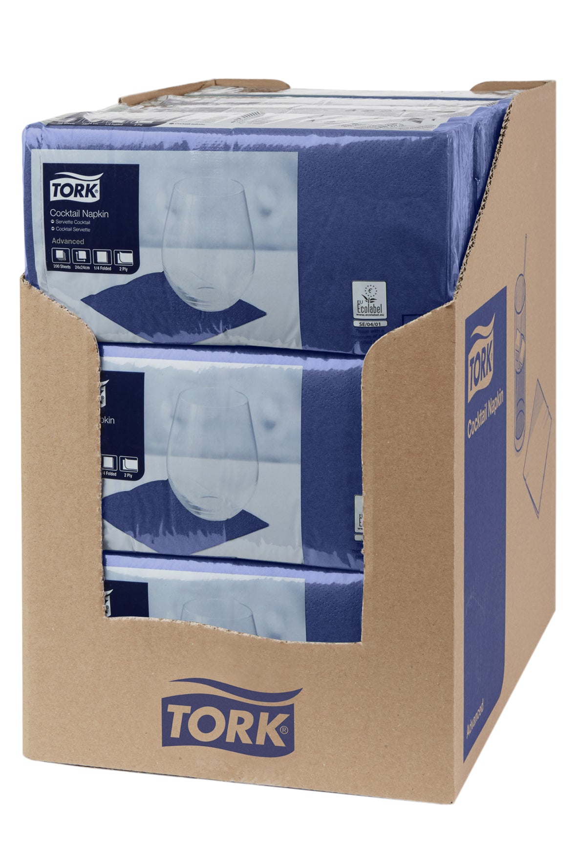 Servietten Tork Cocktail uni aus 2-lagiger Zellulose, 24 x 24 cm gross, in 1/4-Falz, verpackt in der Packung à 200 Stück. Erhältlich in verschiedenen Farben.