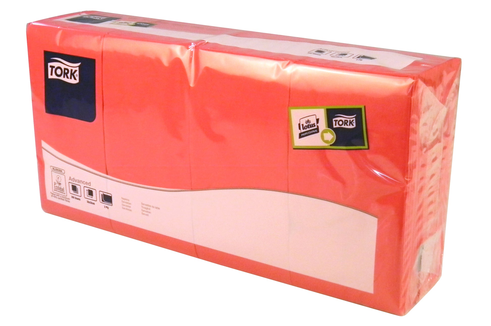 Servietten Tork Lunch uni aus 2-lagiger Zellulose, 33 x 33 cm gross, in 1/8-Falz, verpackt in der Packung à 200 Stück. Erhältlich in verschiedenen Farben.