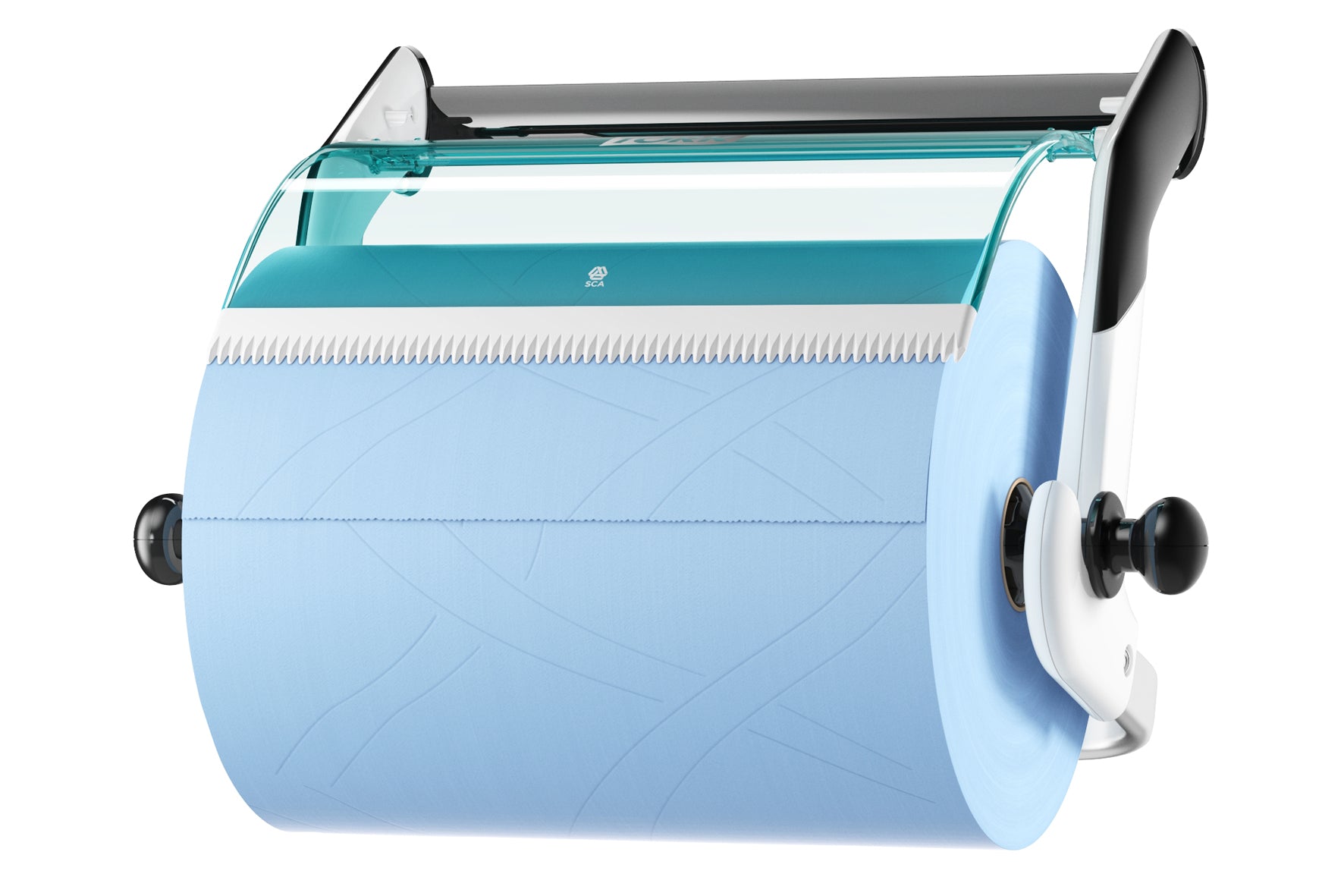 Tork Performance W1, platzsparender und einfach nachfüllbarer Wandhalter. Glasfaserverstärkte Zähne garantieren ein sauberes, sicheres und zuverlässiges Abreissen der Tücher.