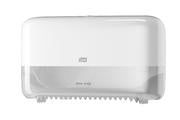 Der Tork OptiServe® T7 Doppelrollenspender ist ein platzsparendes und nachhaltiges Spendersystem für hülsenloses Toilettenpapier. Er bietet eine hohe Kapazität, reduziert das Nachfüllen und halbiert den Lagerbedarf. Das „Easy to use“-zertifizierte Design erleichtert die Benutzung für Gäste und Reinigungspersonal. Das geschlossene Gehäuse schützt die Toilettenpapierrollen und das schlanke Design eignet sich besonders für kleinere Waschräume. Der Verzicht auf Hülsen und Umverpackung trägt zur Abfallvermeidung bei. Der Spender kann bis zu 145 Gäste mit Toilettenpapier versorgen. Kompatibel mit den Tork T7 Nachfüllungen.