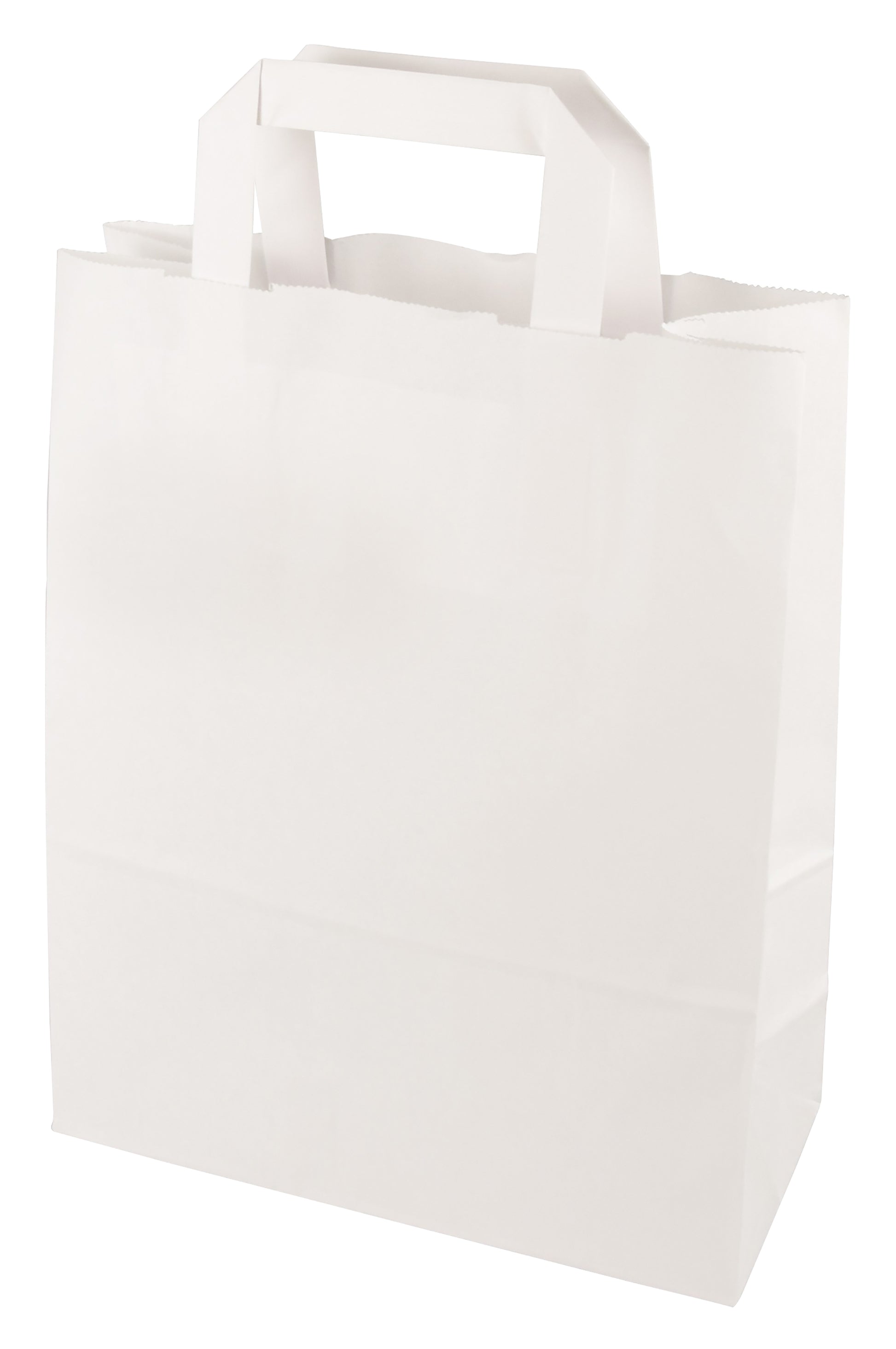 Praktische Tragetasche mit Tragegriff aus weissem Kraftpapier 70 g/m2.