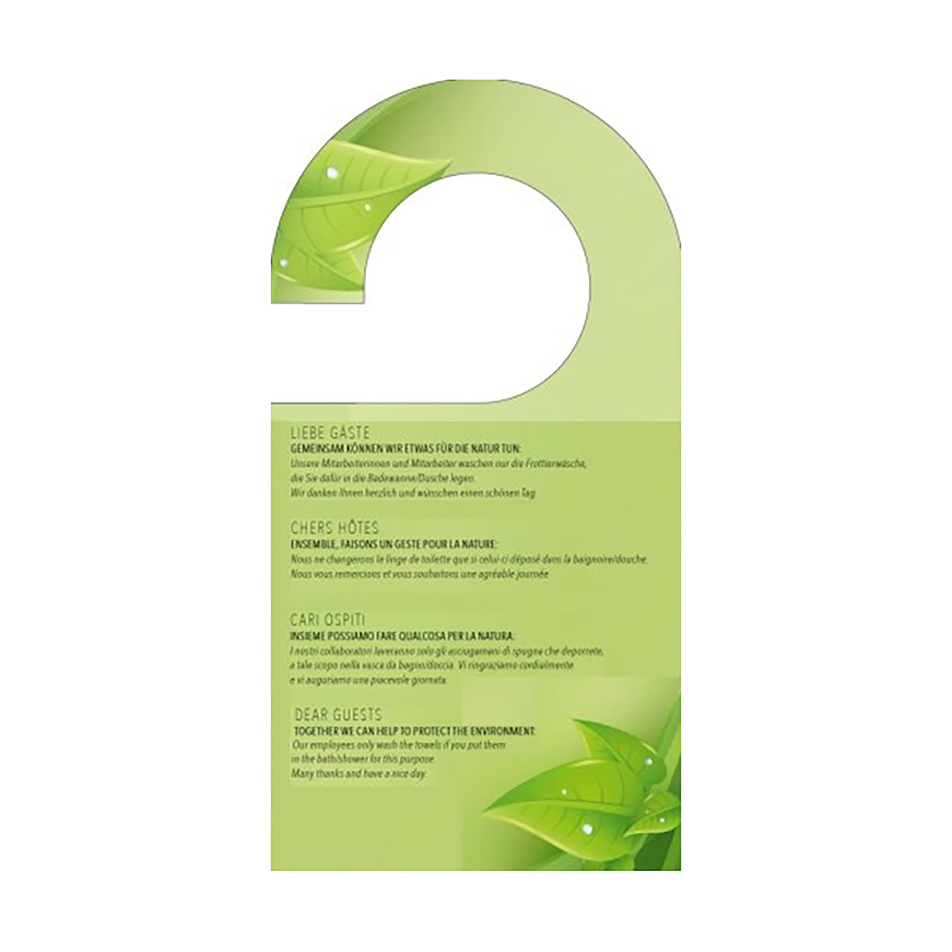 Produkteigenschaften Türklinkenhänger 'Handtuchwechsel / Umweltschutz', 19 x 10 cm, 4-sprachig: