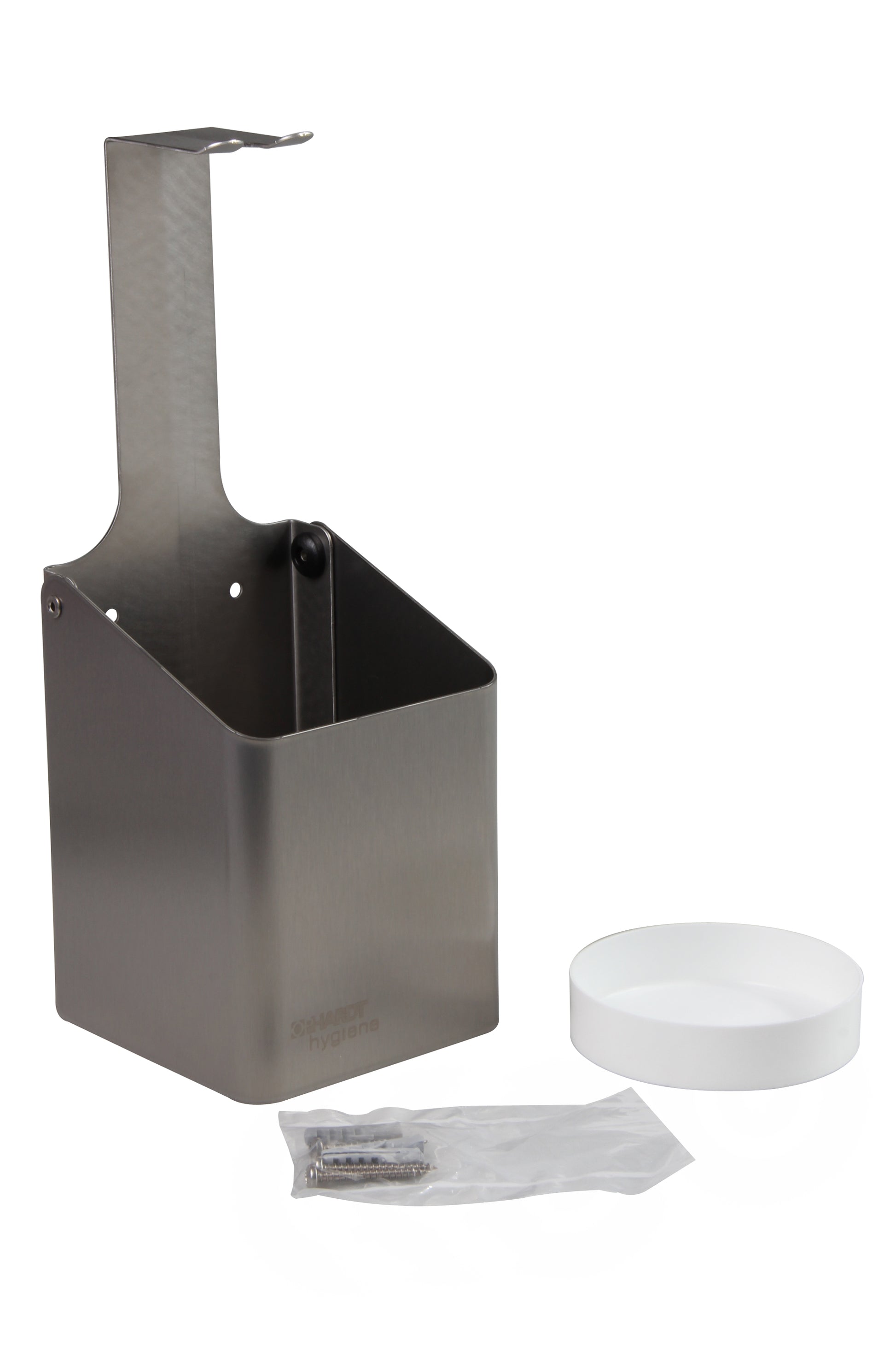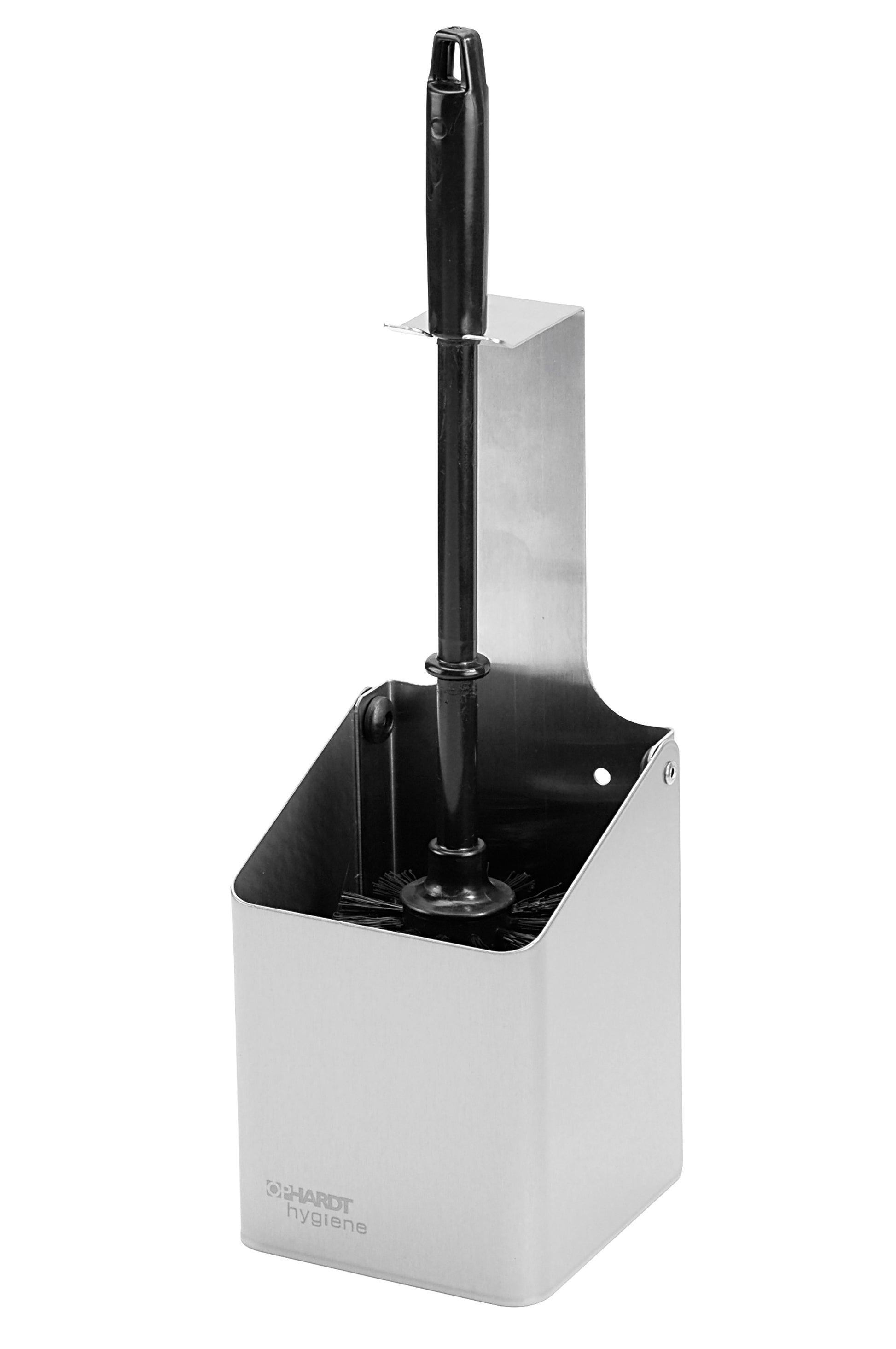 WC-Bürstenhalter aus geschweisstem, geschliffenem Edelstahl mit Anti-Fingerprint-Beschichtung (AFP), herausnehmbarer Tropfschale aus Kunststoff und einer WC-Bürste aus Kunststoff. Die Montage an der Wand ist möglich, der Halter kann jedoch auch freistehend genutzt werden. Das Produkt ist verpackt im Karton à 1 Halter.